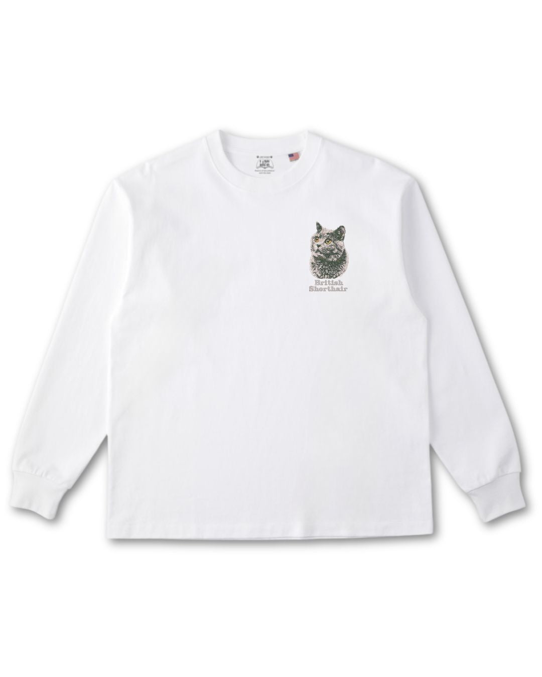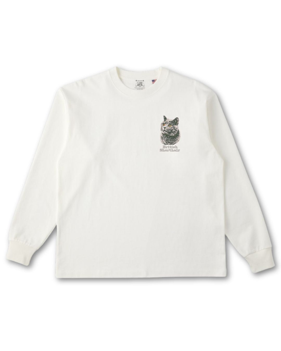 USAコットン100%・8.1ozのヘビーウェイト生地を使用した、タフでしっかりとした着心地の猫刺繍ロングTシャツ。透けにくく、洗っても型崩れしにくい耐久性の高さが魅力です。