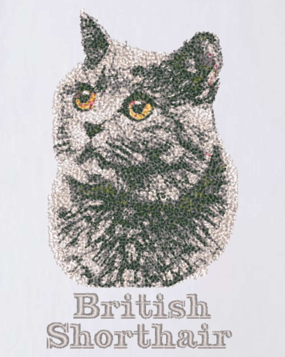 LAPSIだけの完全限定デザイン。British Shorthair(ブリティッシュショートヘアー)を、熟練の職人が一点ずつ心を込めて丁寧に刺繍しています。