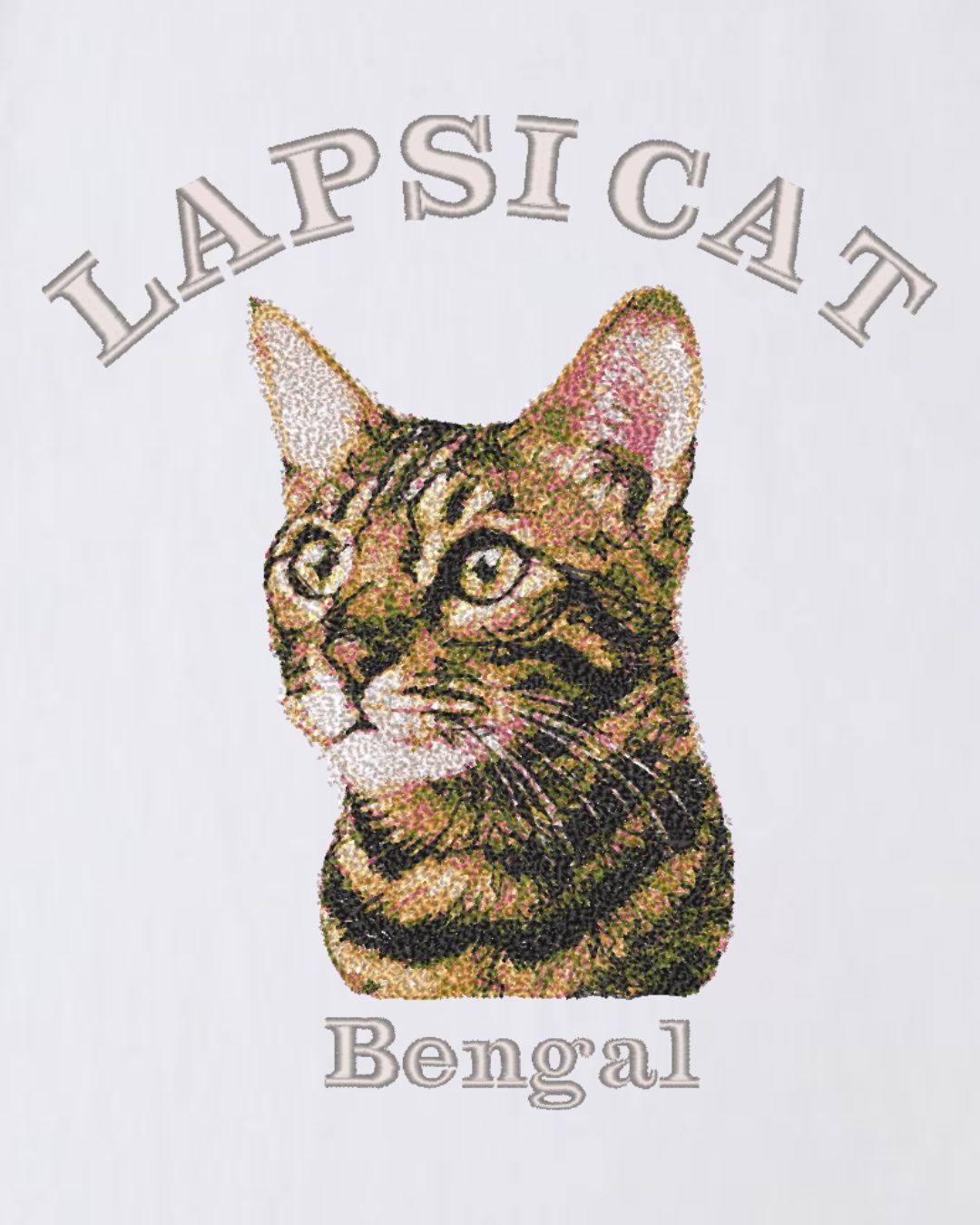 フロントには、リアルなBengal(ベンガル)の刺繍を大胆に配置。最大10色・約6万針を用いて毛並みの立体感を細かく表現し、ピンクの差し色を加えることで自然なツヤと奥行きをプラス。刺繍ならではの温もりと存在感が感じられます。