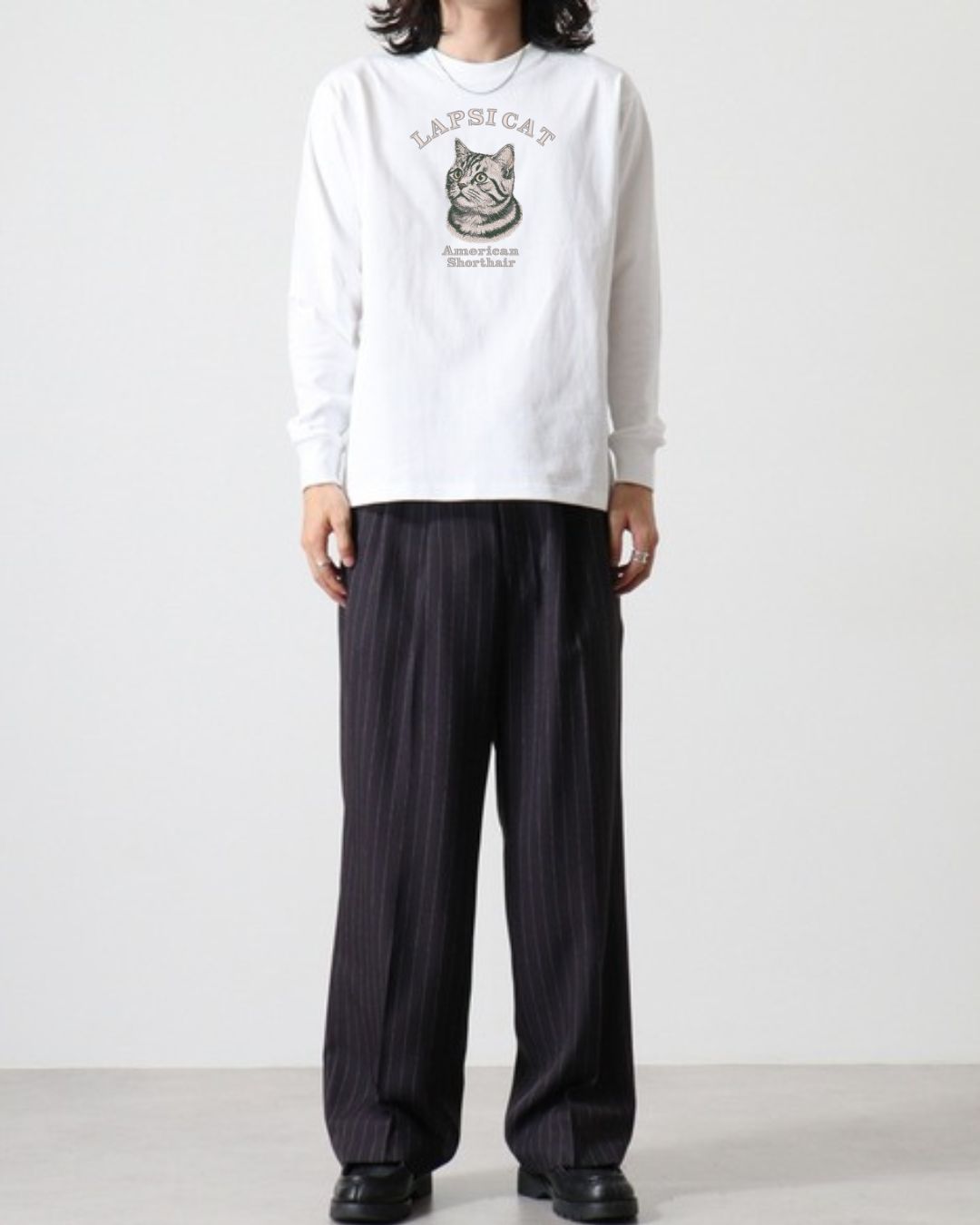 ロゴデザインはアメリカのカレッジロゴをベースにしたサークルロゴスタイルで、クラシックで飽きのこない仕上がり。LAPSI CATオリジナルデザインで、他にはない一着です。