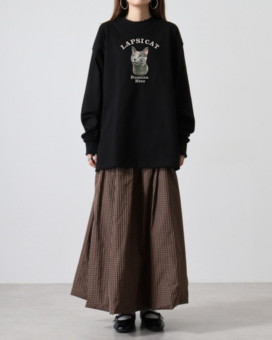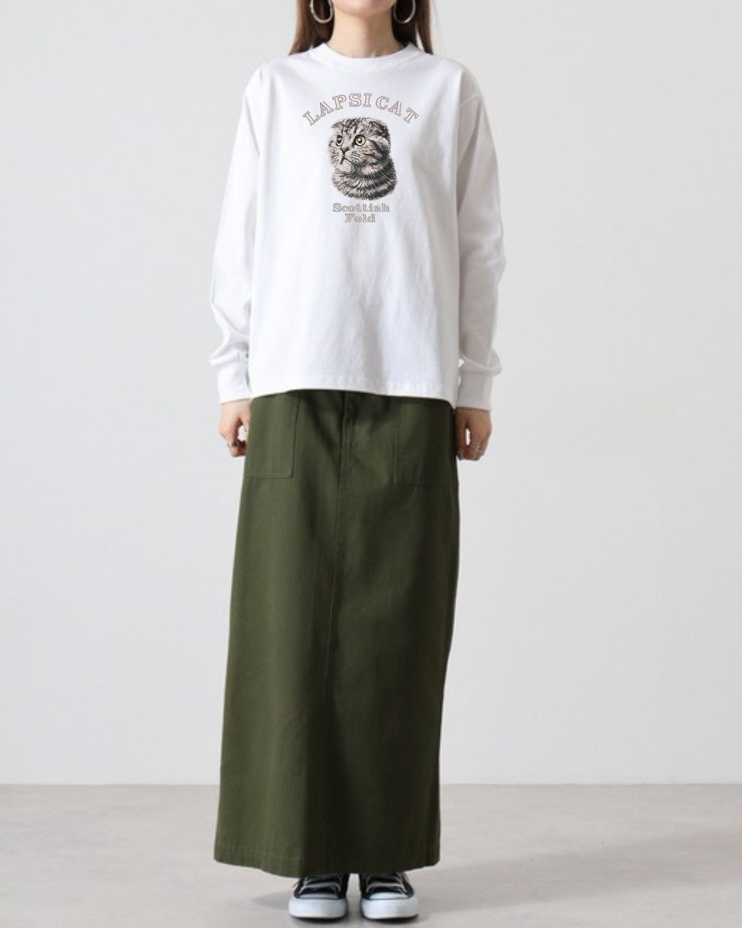 スコティッシュフォールド ミディアム フェイス&サークルロゴ 刺繍 ロンT