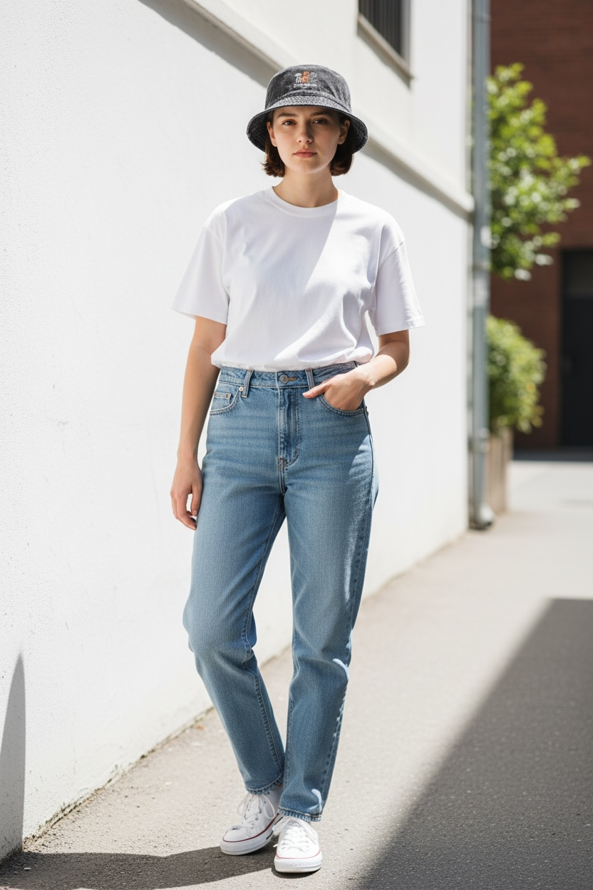 このコットンデニム素材のバケットハットは、適度なウォッシュ加工が施され、柔らかさとオールシーズンの着用が可能です。