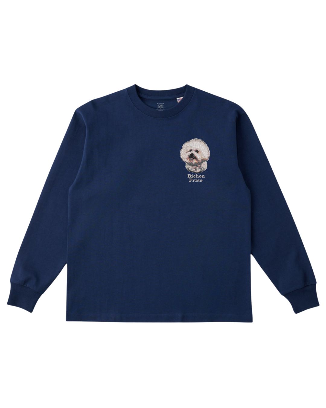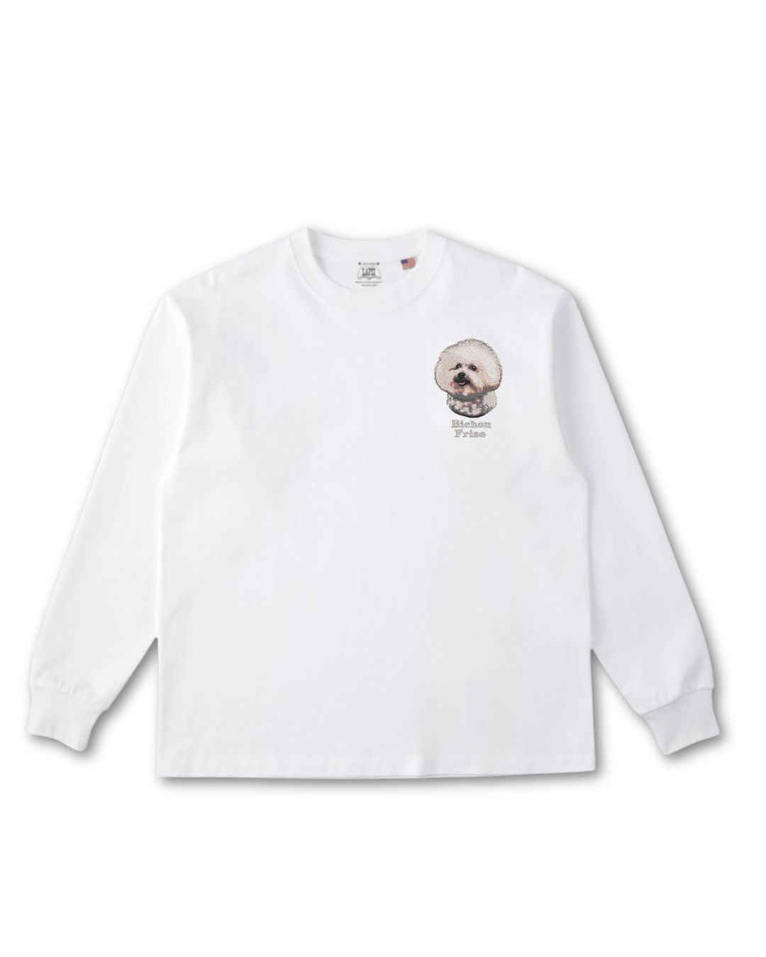 - ビションフリーゼフェイス&ロゴ 刺繍 ロンT