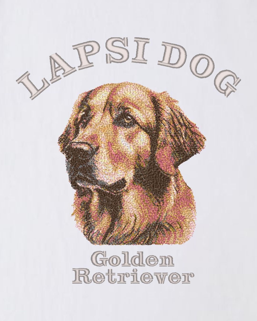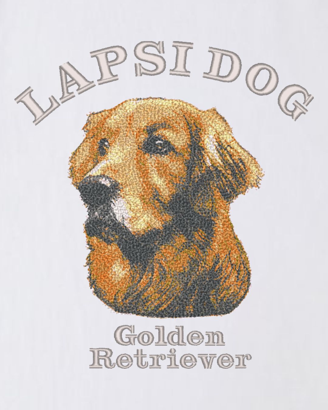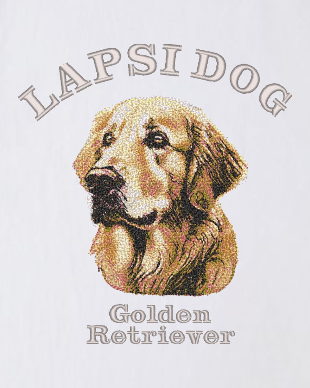 フロントには、リアルなゴールデンレトリバー(Golden Retriever)の刺繍を大胆に配置。最大10色・約6万針を用いて毛並みの立体感を細かく表現し、ピンクの差し色を加えることで自然なツヤと奥行きをプラス。刺繍ならではの温もりと存在感が感じられます。