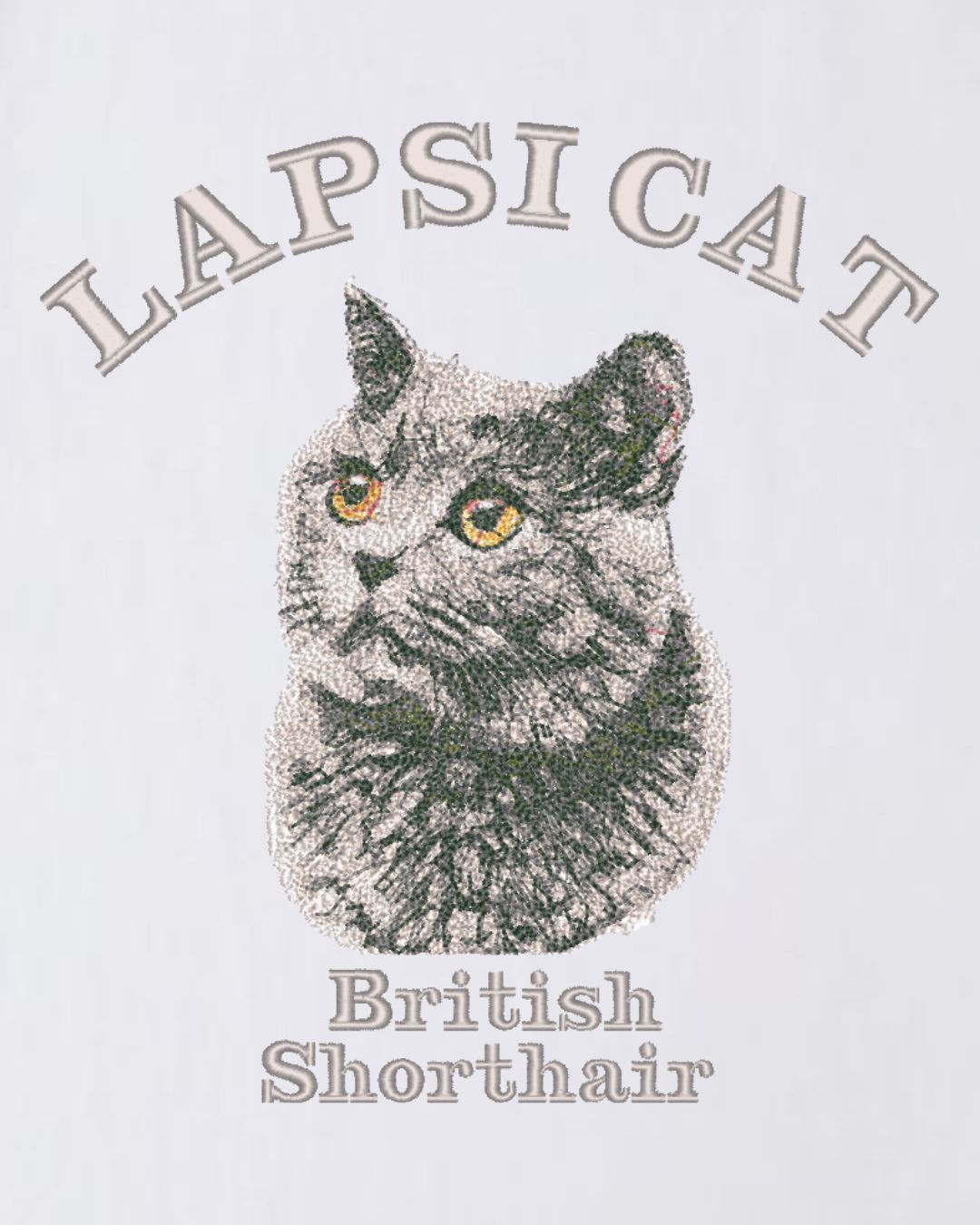 フロントには、リアルなBritish Shorthair(ブリティッシュショートヘアー)の刺繍を大胆に配置。最大10色・約6万針を用いて毛並みの立体感を細かく表現し、ピンクの差し色を加えることで自然なツヤと奥行きをプラス。刺繍ならではの温もりと存在感が感じられます。